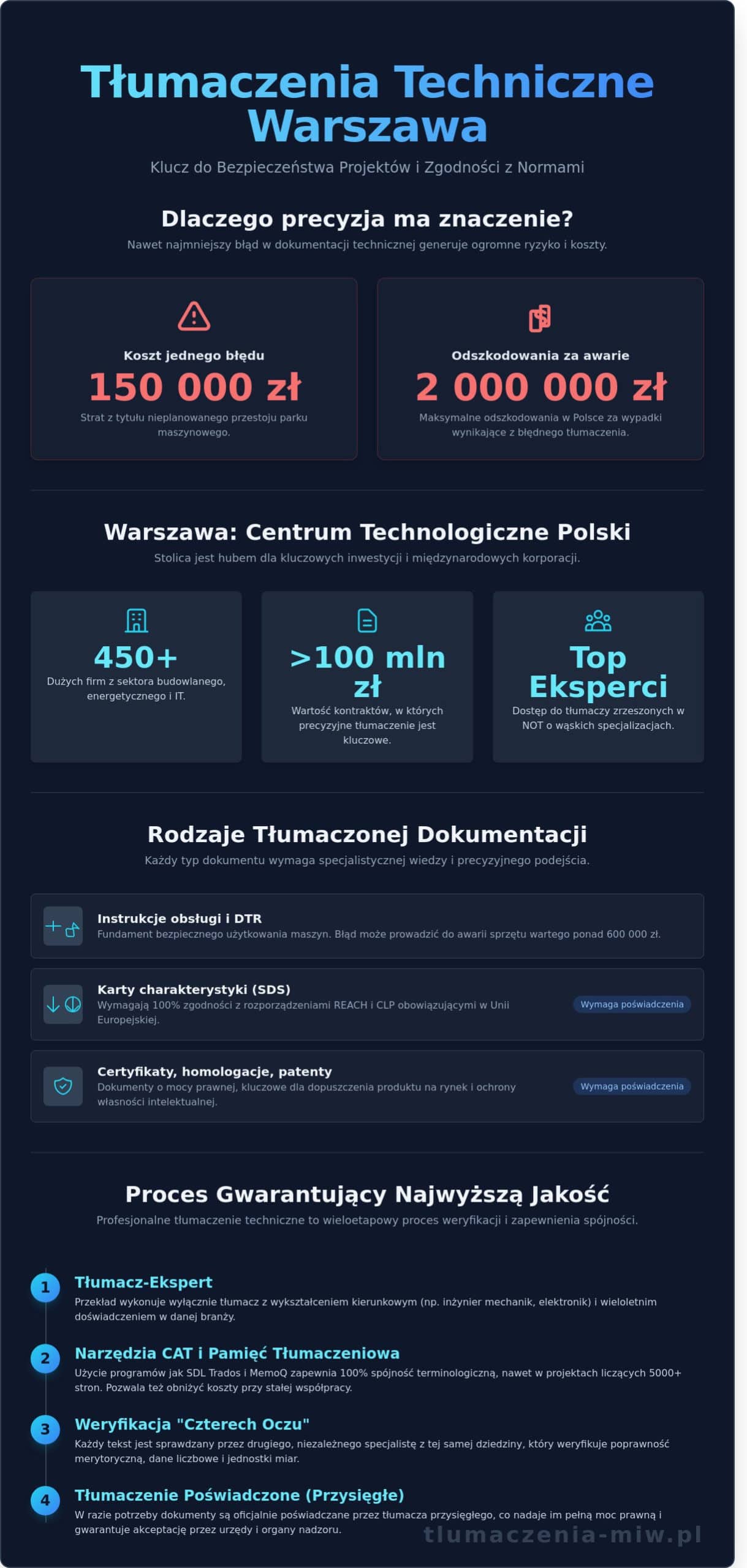 Błąd w jednym parametrze technicznym może kosztować firmę nawet 150 000 zł przestoju lub doprowadzić do poważnej awarii parku maszynowego. Znalezienie eksperta, który wykona rzetelne tłumaczenia techniczne Warszawa, to fundament bezpieczeństwa każdego wdrożenia przemysłowego i budowlanego.